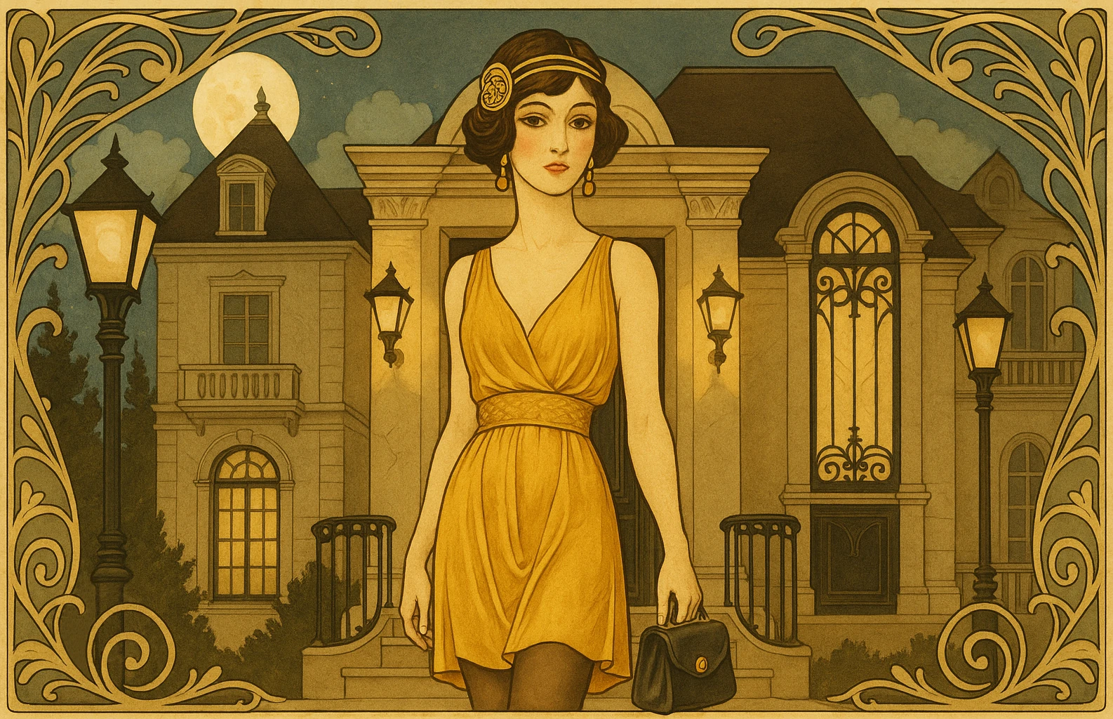 Met de meeste hoogachting nodigen wij u uit voor het Groot Nieuwjaarsbal, te houden op woensdag eenendertig december negentienhonderd negentien in het eerbiedwaardige Hargate Manor, 12850 Mulholland Drive, Los Angeles.