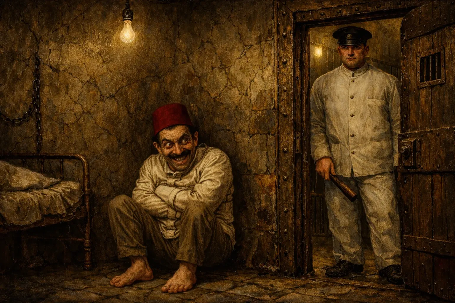 Dat woord "bezetene" brengt mij bij de kern van mijn verzoek. Mij staat bij dat degene die hem destijds bij het hospitaal had achtergelaten, verklaarde dat hierin de oorzaak van zijn geestelijke knak gelegen was. De man beweerde immers dat de Turk tijdelijk bezeten zou zijn geweest door een of andere bovennatuurlijke entiteit. Nadat deze aanwezigheid hem weer had verlaten, zou zijn geest gebroken zijn achtergebleven.