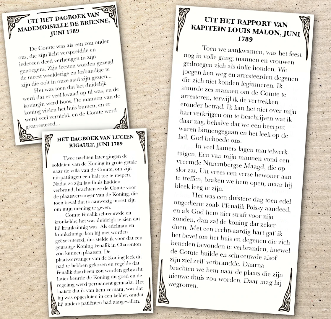 In de afgelopen twee dagen hebben wij gruwelijke geheimen ontrafeld over Comte Fenalik en het Sedefkar Simulacrum. Een Parijse student, genaamd Remi Vangeim, is bezig met een belangrijke taak, het doorspitten van de verstofte archieven van de Bibliothèque Nationale. In de weken voorafgaand aan de Franse revolutie, hebben zich hier in de omgeving van Parijs verschrikkingen afgespeeld die de moedigste ziel zouden doen huiveren. En in deze macabere historie bevond zich Fenalik als het sinistere centrum.
