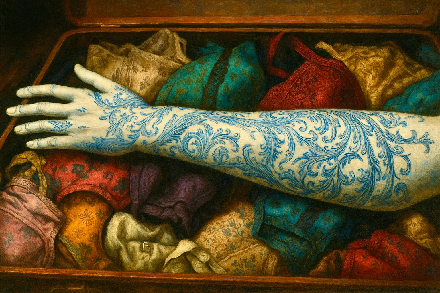 In mijn koffer, waar ik zodadelijk ook dit dagboek in zal plaatsen, rust namelijk nu ook de arm van het Sedefkar Simulacrum, dat oude, lugubere relikwie. Daarna zal ik mijn koffie vergrendelen, een handeling die ik normaliteit ik nooit verrichtte. Echter, vanaf nu neem ik mij voor deze maatregel steevast wel te nemen wanneer het artefact niet onder onze waakzame ogen verblijft. Immers, wij trachten met uiterste zorg te voorkomen dat de wereld weet heeft van ons bezit. En we willen evenmin dat argeloze dienstmeisjes er per abuis mee in aanraking komen.