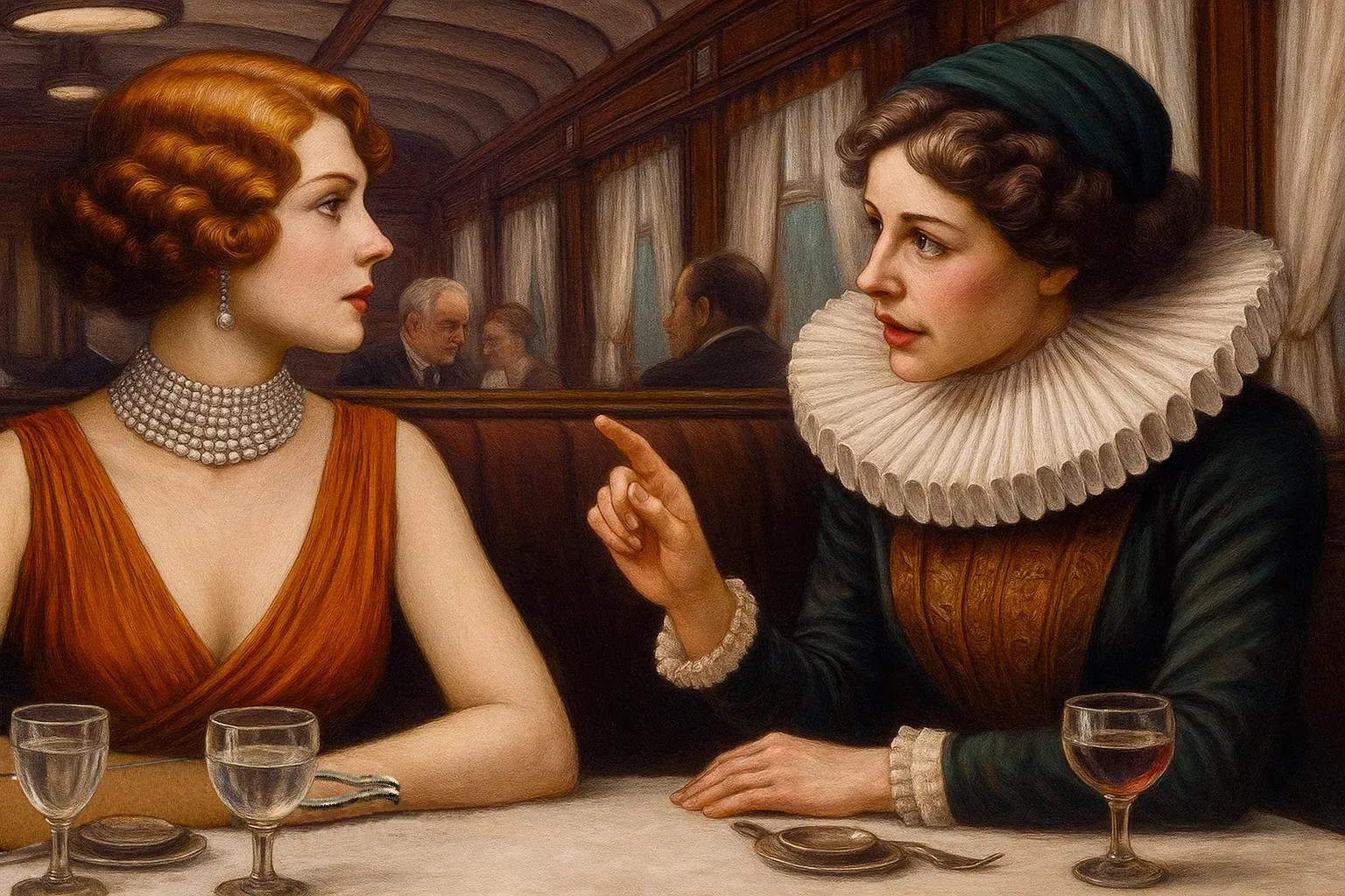 Monsieur Karakov is een wapenhandelaar. Hij bezit Russisch bloed, maar heeft gestudeerd aan de universiteit van Eton in Engeland. Ik heb hem zelf nog niet of nauwelijks gesproken, maar Klaus heeft meer contact gelegd. Hij heeft een zware hutkoffer mee op deze reis waarvan de inhoud ons nog onbekend is. En, heel vreemd: Klaus hoort in zijn aanwezigheid het dreunende geluid van vallende bommen in zijn hoofd, een door Klaus en Karakov gedeeld oorlogstrauma naar ik vermoed.