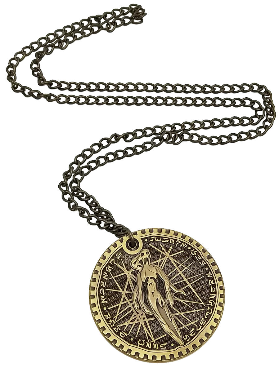 Toen ik het oppakte werd ik verrast door een korte elektrische schok. Dit was geen normaal medaillon! Het was ook versierd met een occult figuur en allerhande onontcijferbare Aklo tekens. Toen wij ons even later weer buiten het desolate pand stonden, werd duidelijk welke kracht het artefact in ieder geval bevatte: ik bemerkte niets meer van het ijzig koude weer. Net als op eerdere momenten bemerkten dat fez-dragende figuren ons observeerden. Het amulet hield ik angstvallig uit het zicht.