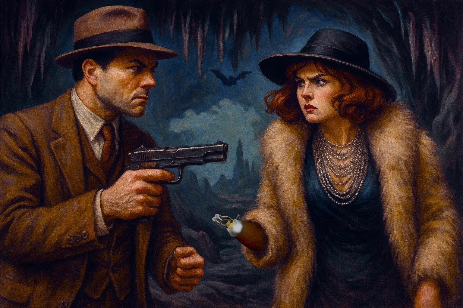 Na een korte treinreis arriveerden we gisterochtend bij de ingang van het grottencomplex. Samen met een groep andere toeristen begonnen we aan een rondleiding door de adembenemende druipsteengrotten. Er hing echter een ongrijpbare spanning in de lucht. Toen plotseling de verlichting werd gedoofd, wist ik dat er iets niet klopte. Onmiddellijk trok ik mijn pistool, alert op wat komen ging.