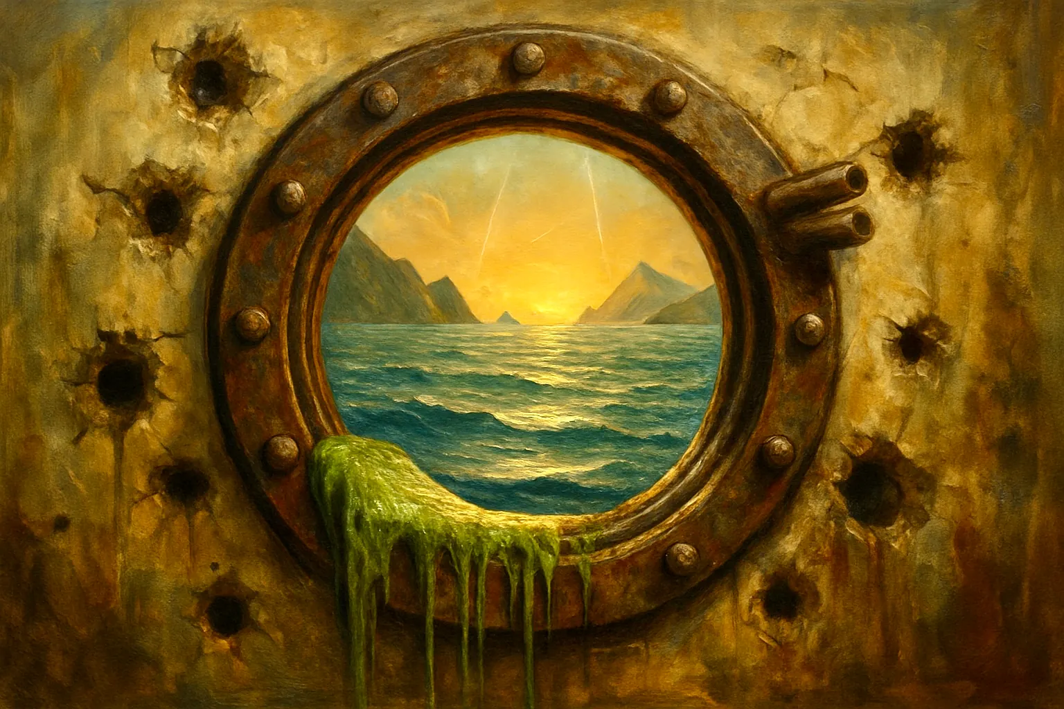 "De Deep Ones die zich aan boord bevonden, leken verdwenen... maar misschien niet geheel. Eén van de patrijspoorten bleek beschadigd, alsof er van buitenaf mee was geknoeid. Tot overmaat van ramp verschenen er opeens enorme, glibberige eieren in de kombuis — naar verluidt aangetroffen door de kok. Het kostte ons de nodige moeite om die ongewenste vondst van zowel het menu als het schip te verwijderen."