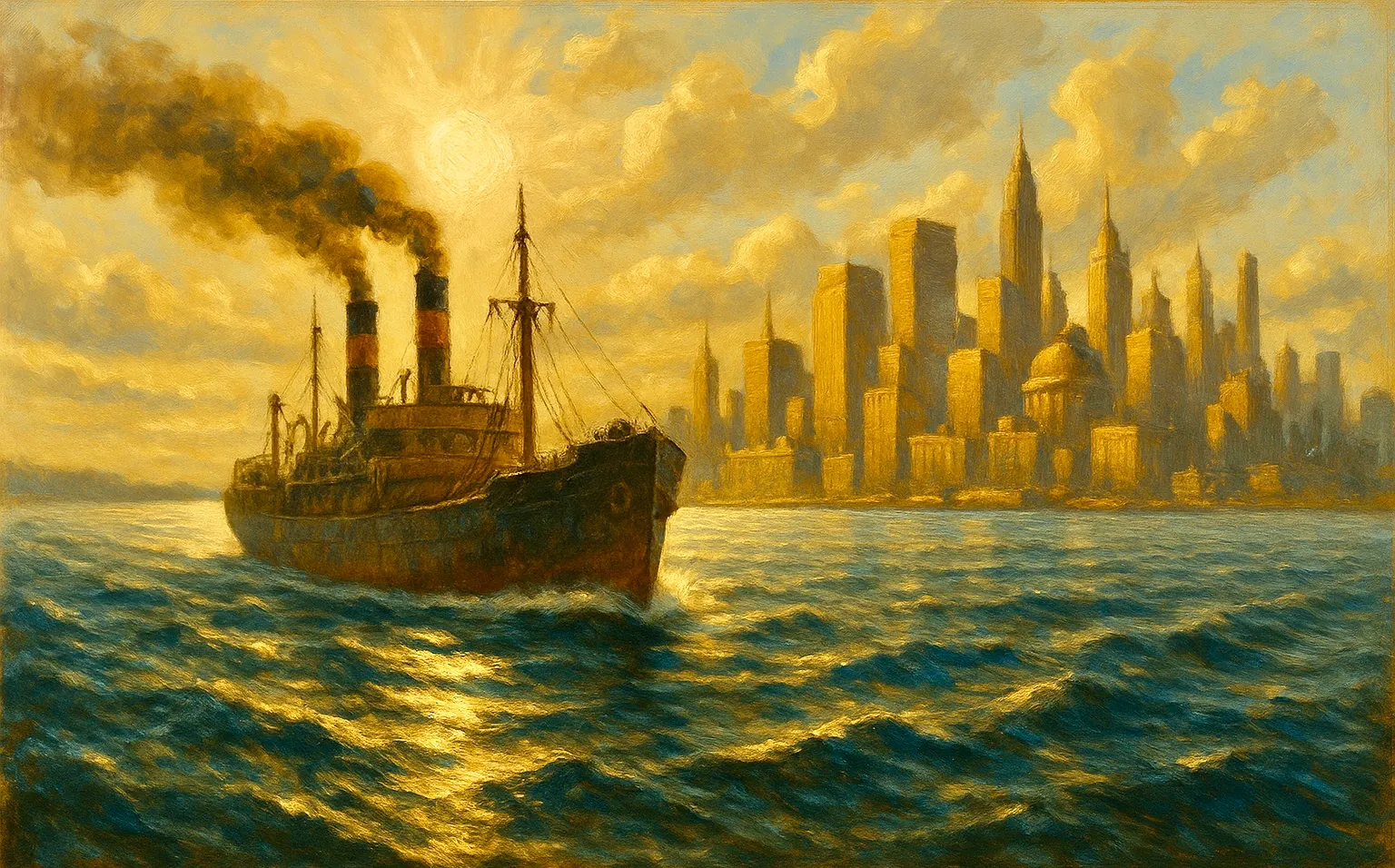 "Onze volgende aanlegplaats: Melbourne. Het deed ons allen goed om voor enkele dagen van boord te kunnen gaan. Nieuwe voorraden werden ingeslagen, en wij genoten van vaste grond onder de voeten en de eenvoudige geneugten van een stad."