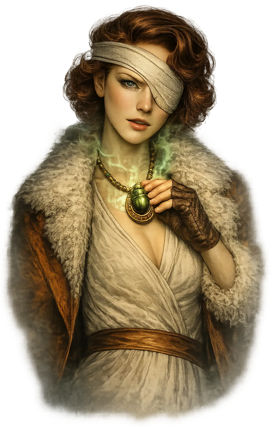 Each time the wearer of the amulet makes use of the power stored within the scarab, it exposes the wearer’s psyche to the dark and intelligent forces that enchanted it. After the wearer has paid the required magic and Sanity points, the wearer must also make a Sanity roll as the victim is being desiccated, but this Sanity roll is not because of the horror being inflicted on the victim. Instead, it gauges the wearer’s psychic defense against the scarab. With a failed Sanity roll, the wearer gains +1% to their Cthulhu Mythos skill. Once the wearer has gained +10% from the scarab, then the wearer can hear the madness-inducing whisperings of Yog-Sothoth, triggering a new Sanity roll (1D2+1/1D10 loss).