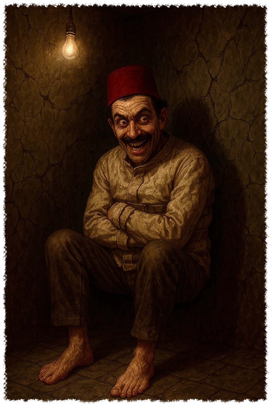 Tijdens een bezoek aan Engeland in 1892 raakte Mustafa verwikkeld in afschuwelijke gebeurtenissen die uiteindelijk zouden leiden tot de totale ineenstorting van zijn geest. Onderweg naar de Henley Royal Regatta werd hij, samen met zijn reisgenoot Hans von Grabräuber, in hun treincoupé getuige van een gewelddadige moord. De dader leek een blinde, reeds overleden man te zijn, die een huiveringwekkend mes hanteerde.