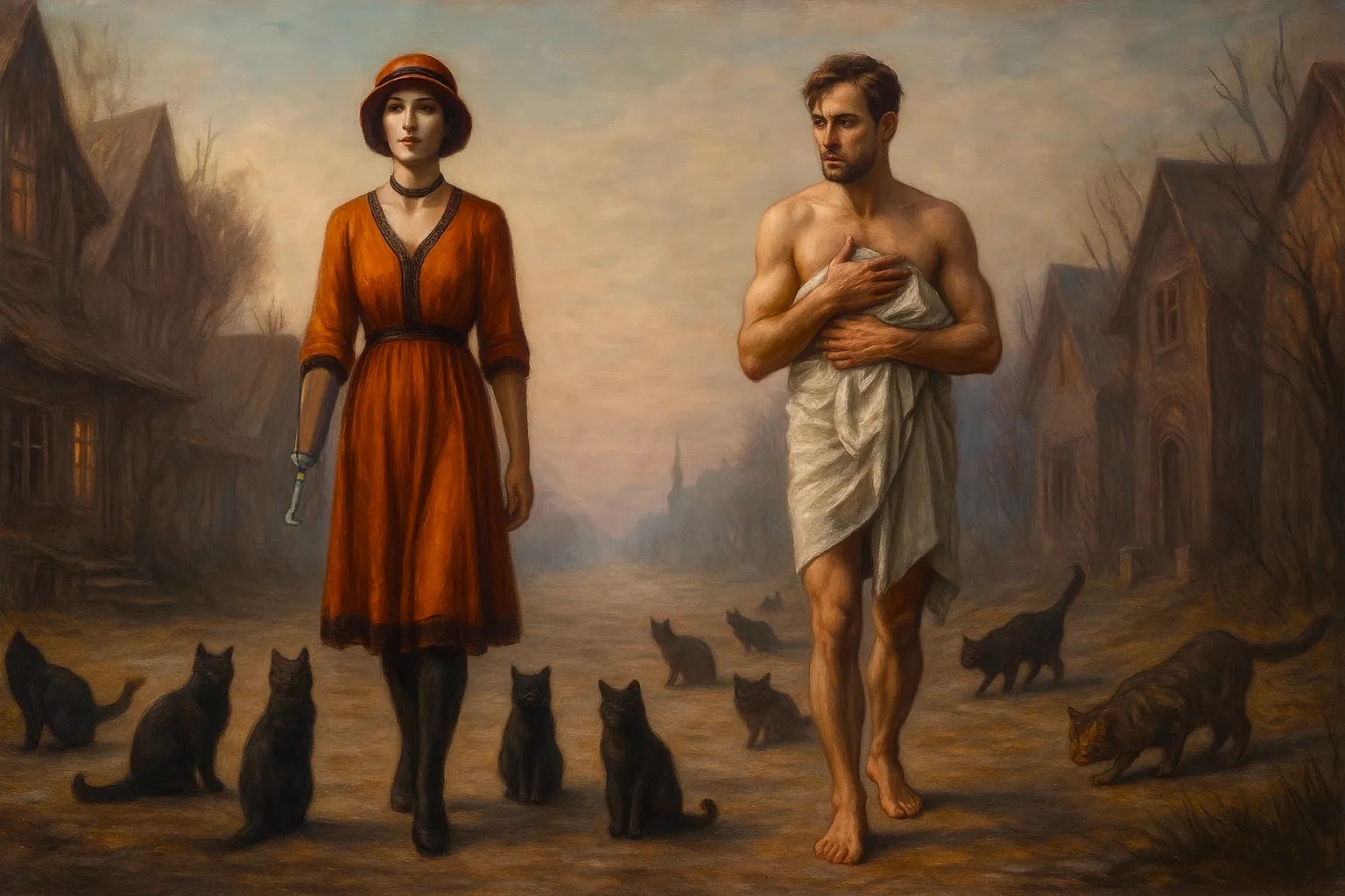 Natuurlijk, sinds alle ervaringen die ik inmiddels heb met het occulte en het buitennatuurlijke, zijn mijn dromen wel vaker vervreemdend of angstaanjagend. Dus in eerste instantie was ik niet gealarmeerd door deze droom. Ik bevond mij in een stadje, in een etherisch landschap. Ik was vergezeld door Klaus, die, vreemd genoeg, slechts gekleed was in een handdoek. Dat was misschien al enigszins eigenaardig. We liepen over een weg en we werden vergezeld door letterlijk honderden katten van velerlei pluimage.