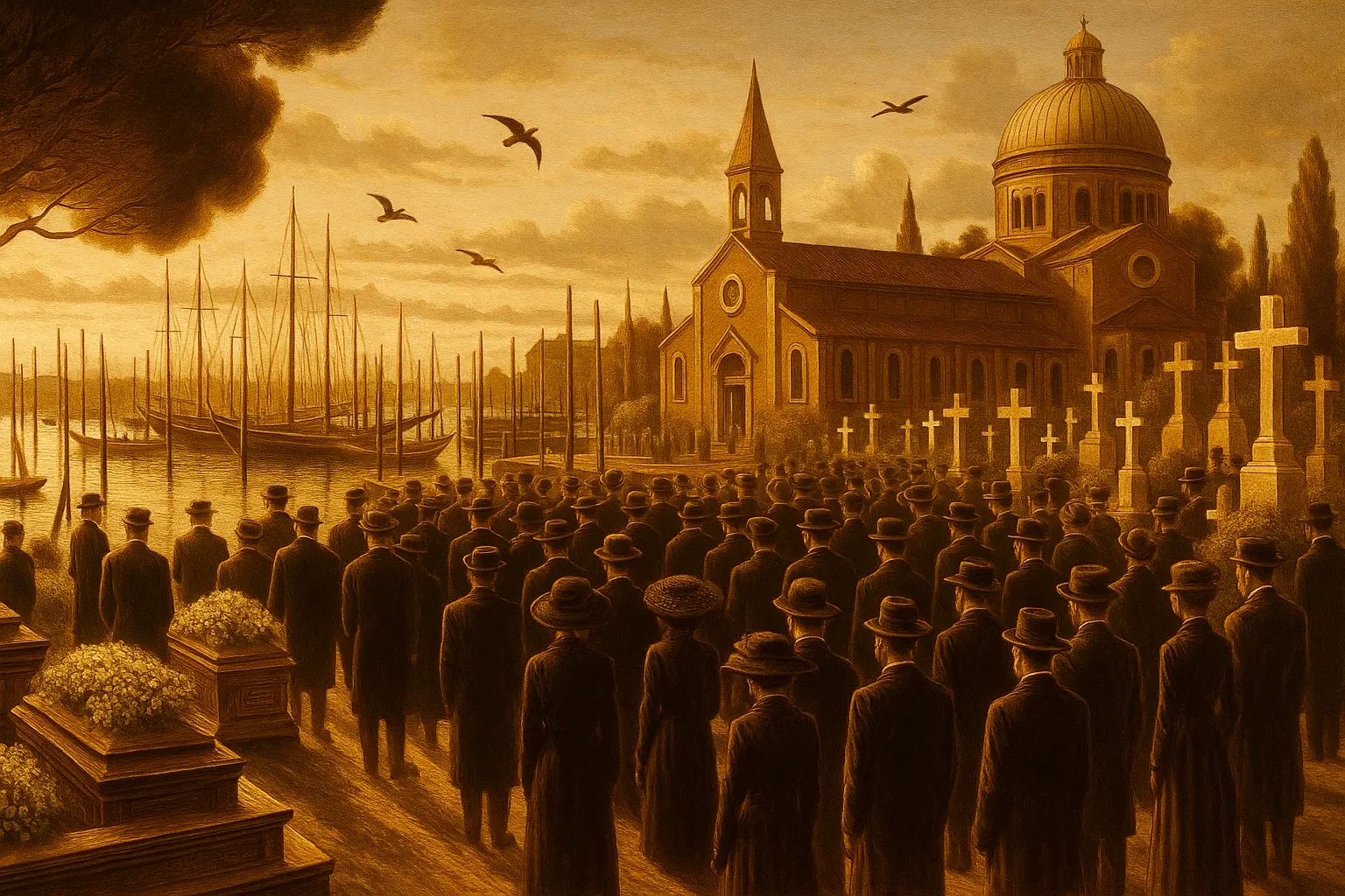 De uitvaart van Maria’s vader vond plaats op het San Michele kerkhof, gelegen op een eiland even buiten de stad gelegen. Zowel Alberto als Giorgio waren aanwezig, maar deden hun best elkaar te negeren. De plechtigheid verliep zonder incidenten, evenals de condoleance na afloop bij Maria’s residentie. Daar spraken wij Giorgio die het zegel uit de basiliek herkende als zijnde van de familie Gremanci, van originele poppenmakers, maar na de oorlog nu vooral actief als makers van protheses voor veteranen. Giorgio bood aan om ons naar hun werkplaats te brengen. Die tocht werd echter wreed verstoord doordat Alberto en zijn zwarthemden de gondolier onder druk hadden gezet om Giorgio een lesje te leren. Met enige moeite hebben we een gewelddadige escalatie weten te voorkomen.