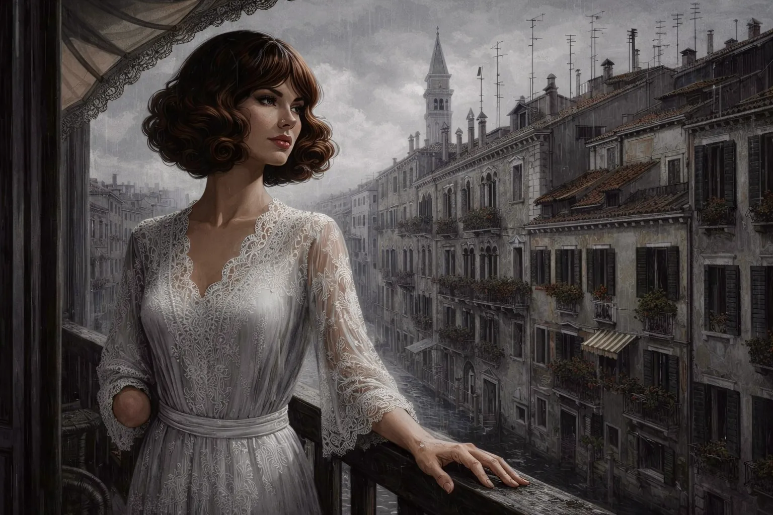 En dat lukte gelukkig, met wat hulp van Maria’s buurvrouw en een vriendelijke gondolier. Zo’n twee uur later waren we met een bijzonder smerige en compleet doorweekte Maria terug op de hotelkamer. Terwijl zij zich opfriste, gingen wij vervolgens op zoek naar haar geliefde Giorgio. In het etablissement waar hij zich met regelmaat ophield bleek hij net vertrokken, maar we konden hem gelukkig bijtijds bij Maria’s huis onderscheppen voordat de jonge communist dwaze dingen zou gaan doen. De reünie was hartverwarmend, en we drukten beiden op het hart om niet te talmen en om snel in het huwelijksbootje te stappen teneinde al deze ellende achter zich te laten.