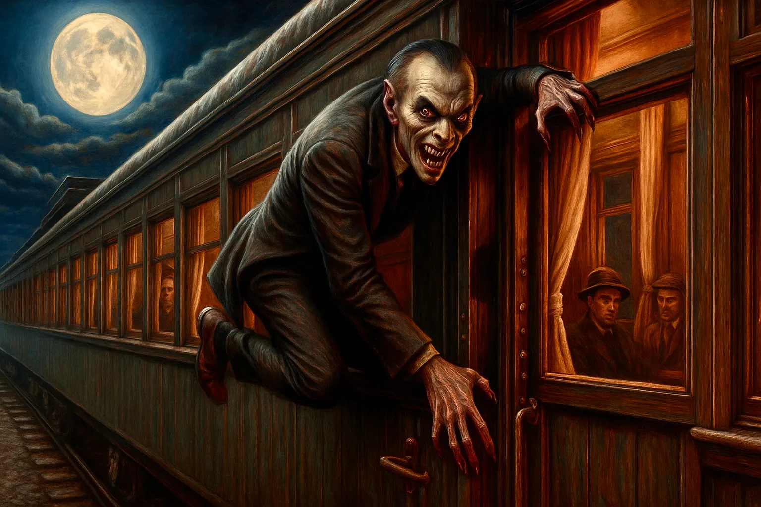 Eenmaal onderweg werden Klaus en ik beide overmand door slaap en beleefden we vervolgens dezelfde, verontrustende droom. Een sinistere, bleke figuur, gelijkend op de gestalte die ik bovenop de klokkentoren had aanschouwd, klauterende op bovennatuurlijke wijze langs de zijkant van de Orient Express om de passagiers in hun coupés te bespieden. Ook wij bevonden ons aan boord en werden nog veel nadrukkelijker gadegeslagen door deze entiteit. Kort daarna ontwaakten Klaus en ik weer, ervan overtuigd dat dit niet het laatste zal zijn wat we van dit wezen zullen zien.