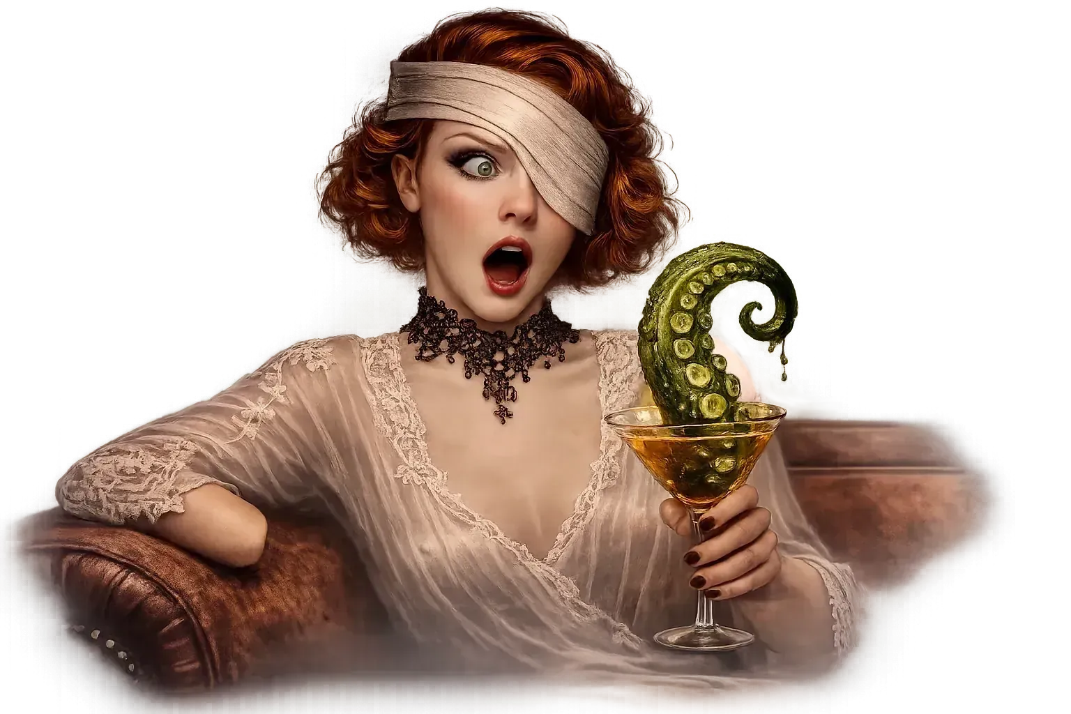 Geen pijn — dat niet — maar een plotselinge, diepe druk in mijn lege oogkas. Alsof zich daar iets verzamelde dat geen plaats had om te blijven. Een warme, kloppende sensatie volgde, traag maar onmiskenbaar. Ik verstijfde, het glas nog aan mijn lippen.